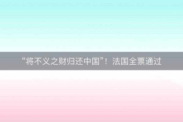 “将不义之财归还中国”!法国全票通过