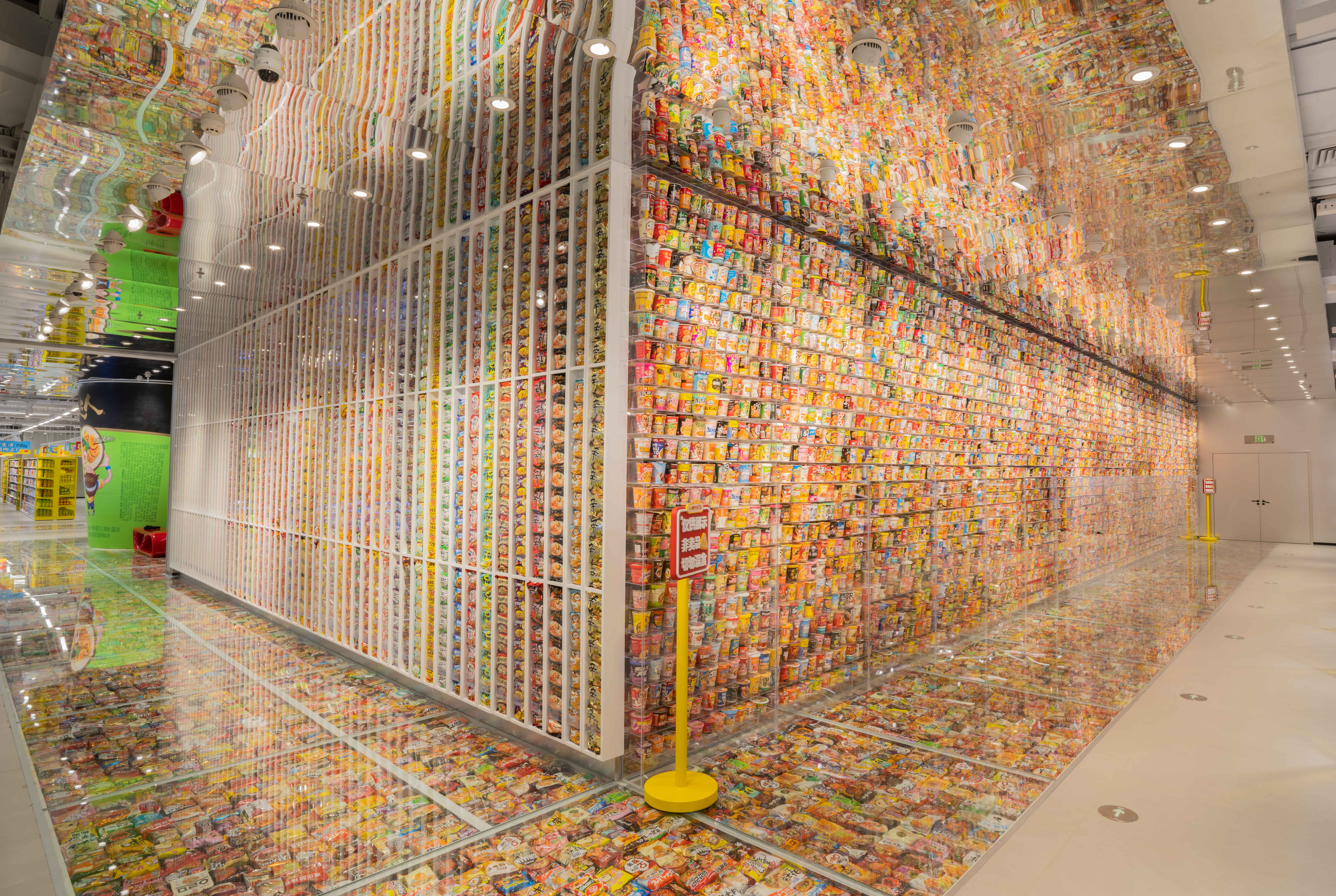 “泡面之城”集中呈现来自全国及全球的3500多种泡面,从经典的老口味到稀有的地域限定款,应有尽有,把很多人学生时代、加班夜晚的生活共鸣,做成了击中消费者情绪的主题空间。而“全球零食站”则集中呈现进口零食,体验像寻宝一样逛全球的探索感,其中包括来自近20个国家最全口味的可乐,也汇集了最全口味的乐事薯片等。