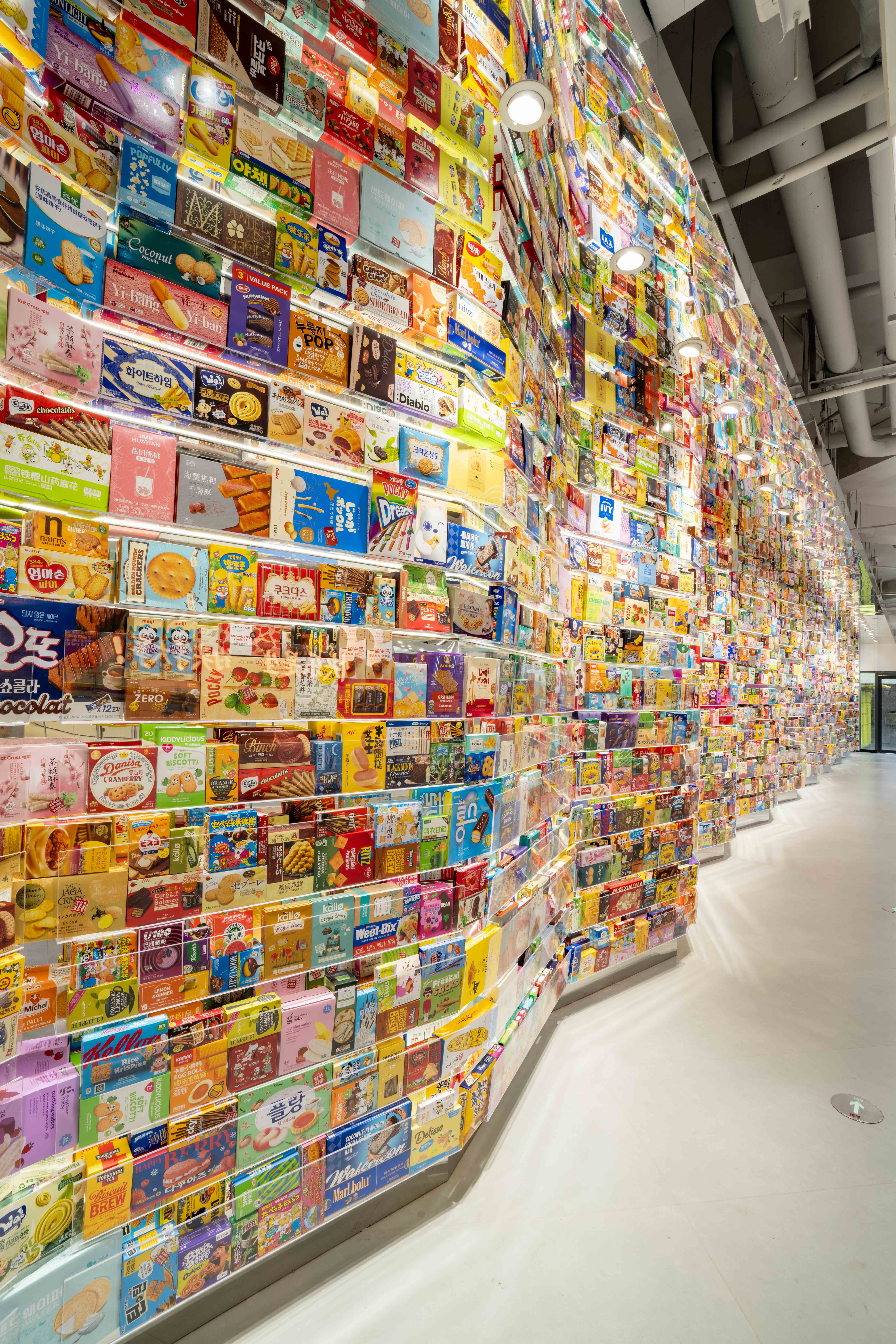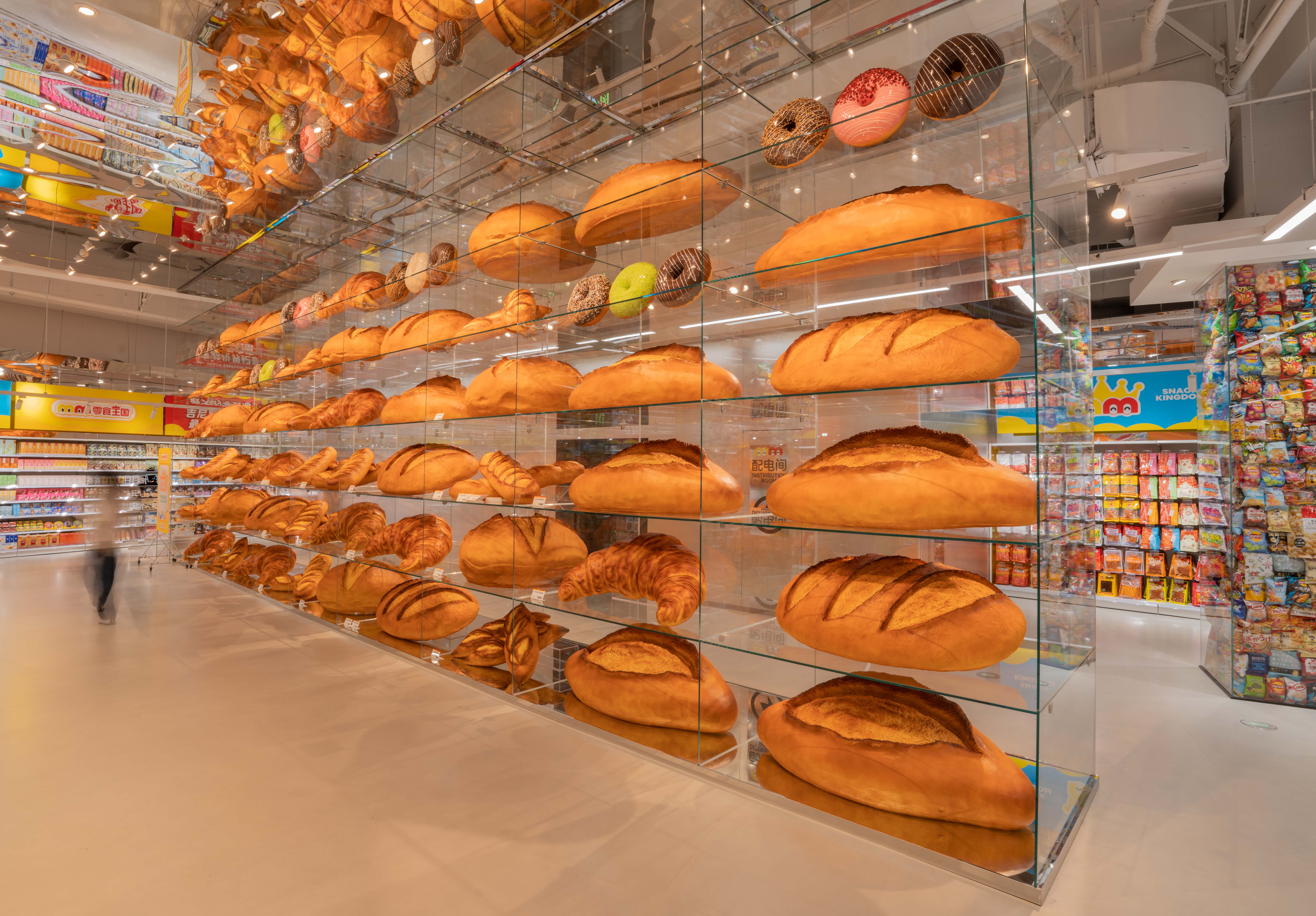 在空间布置上,除“水饮小镇”“糖果森林”“辣条秘境”“零食博物馆”“零食周边”“零食有礼”“零食很大”等主题区外,还设置了多处出片型打卡点位,包括饮料区巨型瓶装置与玻璃地台、棒棒糖墙、糖果管道、巨无霸购物车、巨型面包墙等。